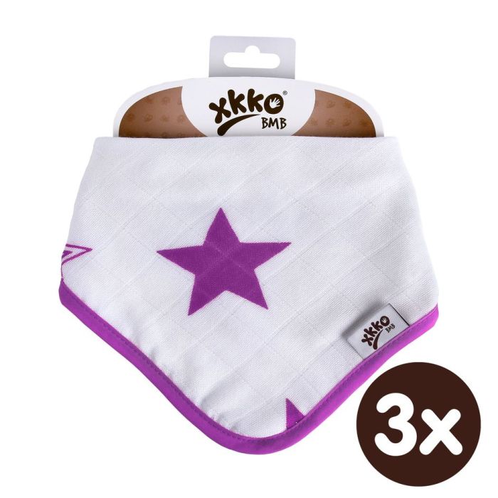 Bambusový slintáček XKKO BMB - Lilac Stars 3x1ks VO bal.