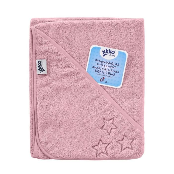 BIO bavlněná froté osuška s kapucí XKKO Organic 90x90 - Baby Pink Stars