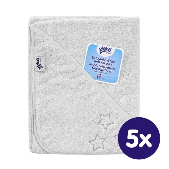 BIO bavlněná froté osuška s kapucí XKKO Organic 90x90 - White Stars 5x1ks (VO bal.)