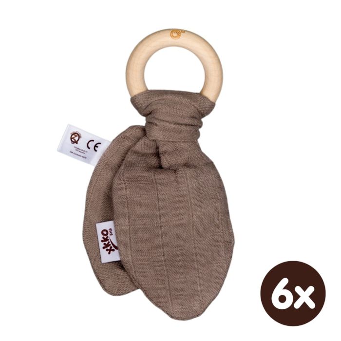 Dřevěné kousátko XKKO BMB s šustivými lístky z extrémně jemného bambusového mušelínu. Bambusová viskoza je antibakteriální a nezpůsobuje žádnou alergickou reakci.