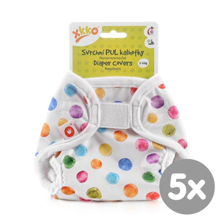Description / Svrchní PUL kalhotky XKKO Newborn - Watercolour Polka Dots 5x1ks (VO bal.)