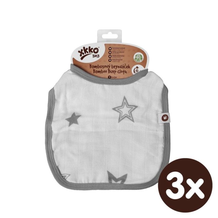 Bambusový bryndáček XKKO BMB - Silver Stars 3x1ks VO bal.