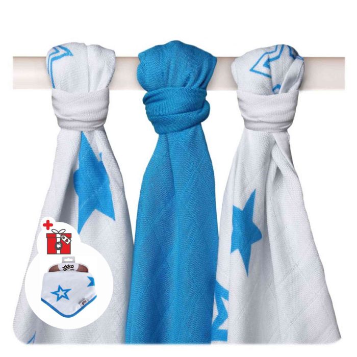Bambusové pleny XKKO BMB 70x70cm - Cyan Stars MIX 10x3ks VO bal.