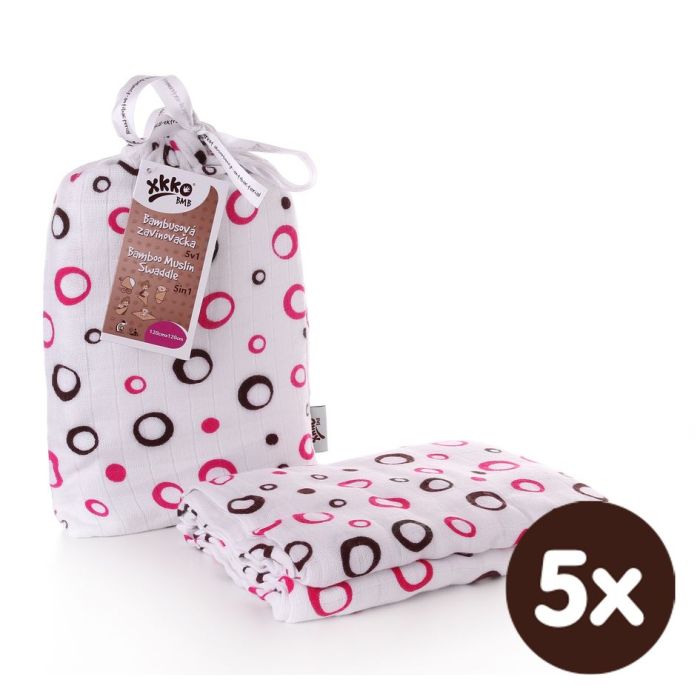 Bambusová zavinovačka XKKO BMB 120x120cm - Magenta Bubbles 5x1ks VO bal.