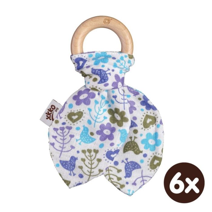 Dřevěné kousátko XKKO BMB s šustivými lístky z extrémně jemného bambusového mušelínu. Bambusová viskoza je antibakteriální a nezpůsobuje žádnou alergickou reakci.