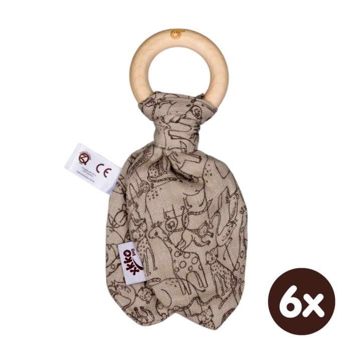 Dřevěné kousátko XKKO BMB s šustivými lístky z extrémně jemného bambusového mušelínu. Bambusová viskoza je antibakteriální a nezpůsobuje žádnou alergickou reakci.