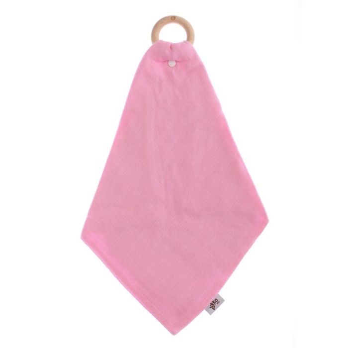 Dřevěné kousátko XKKO BMB s plenkou z extrémně jemného bambusového mušelínu. Bambusová viskoza je antibakteriální a nezpůsobuje žádnou alergickou reakci.