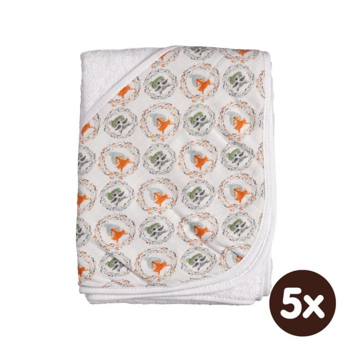 Bambusová froté osuška s kapucí XKKO BMB 90x90 - Fox&Raccoon 5x1ks (VO bal.)