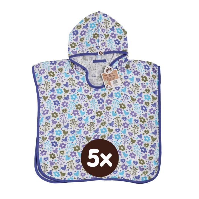 Description / Bambusové mušelínové pončo XKKO BMB - Flowers&Birds Boys 5x1ks (VO bal.)