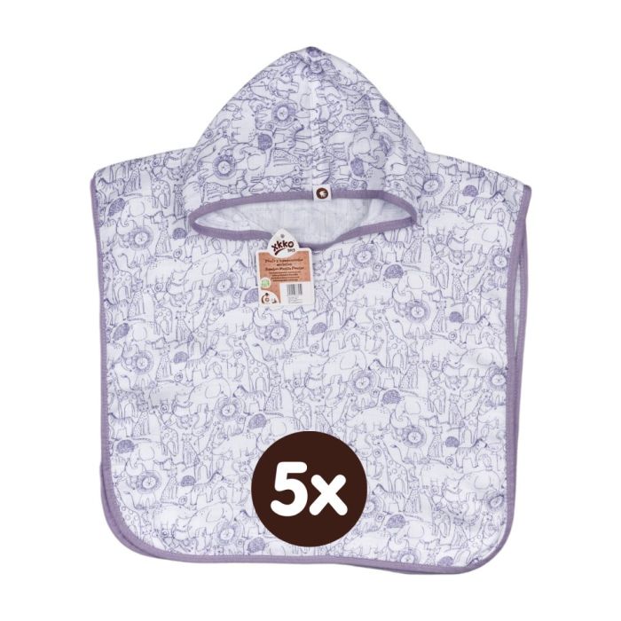 Description / Bambusové mušelínové pončo XKKO BMB Safari - W/Lavender Aura 5x1ks (VO bal.)