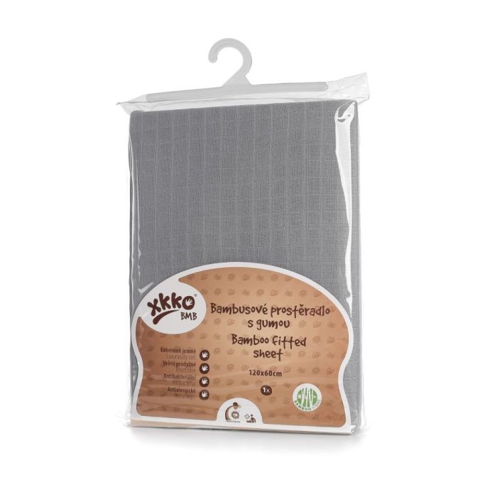 Bambusové prostěradlo s gumou XKKO BMB 120x60 - Baby Grey