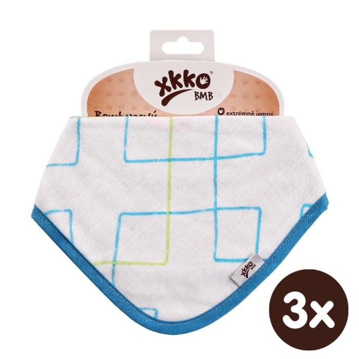 Bambusový slintáček XKKO BMB - Cyan Squares 3x1ks VO bal.