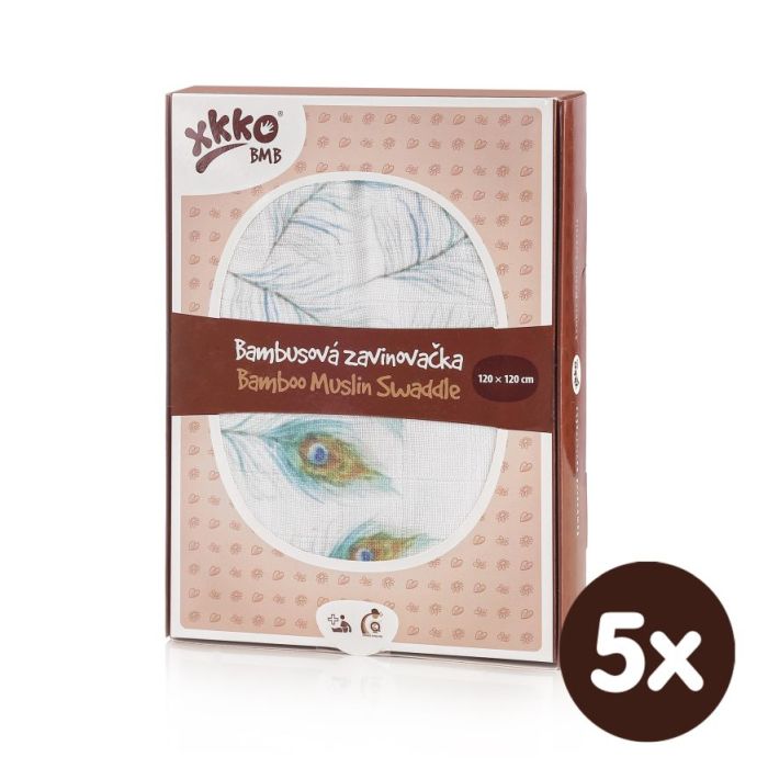 Bambusová zavinovačka XKKO BMB 120x120 Digi - Peacock Feathers 5x1ks VO bal.