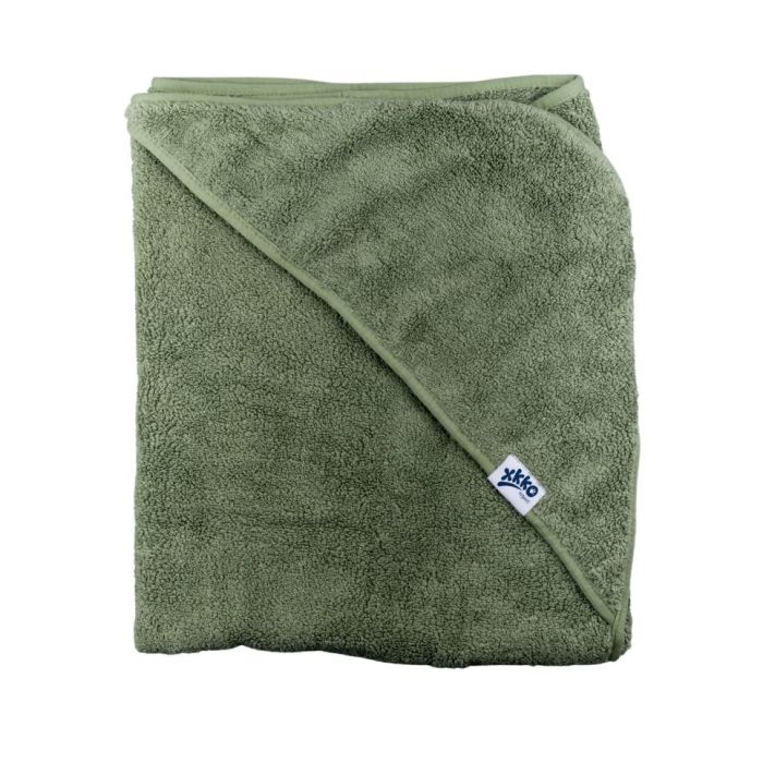 BIO bavlněná froté osuška s kapucí XKKO Organic 90x90 - Granite Green