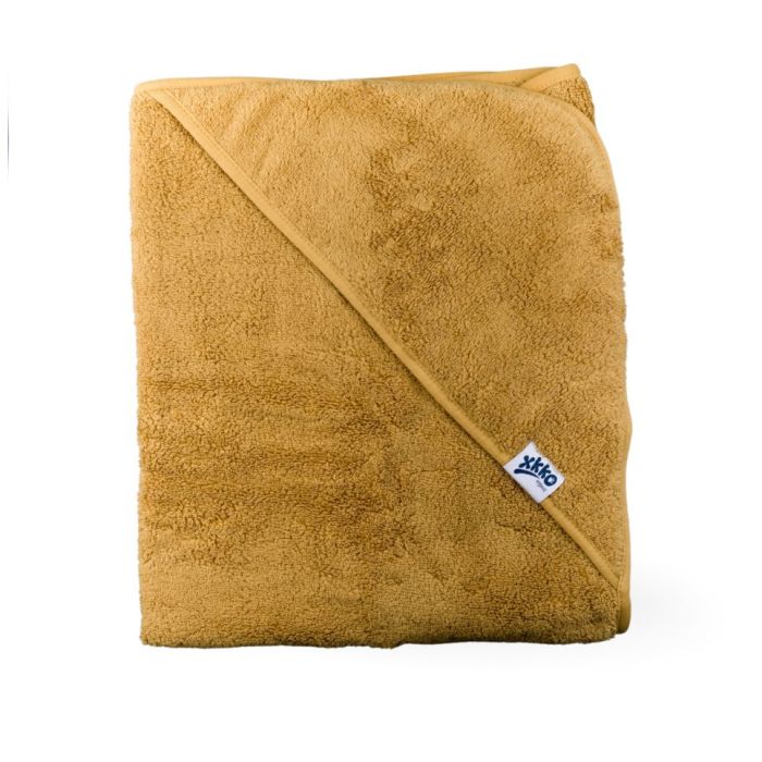 BIO bavlněná froté osuška s kapucí XKKO Organic 90x90 - Honey Mustard