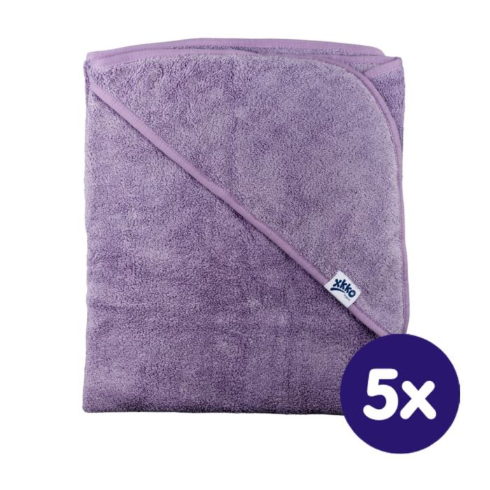 BIO bavlněná froté osuška s kapucí XKKO Organic 90x90 - Lavender Aura 5x1ks (VO bal.)