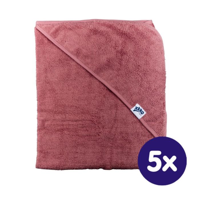 BIO bavlněná froté osuška s kapucí XKKO Organic 90x90 - Mesa Rose 5x1ks (VO bal.)