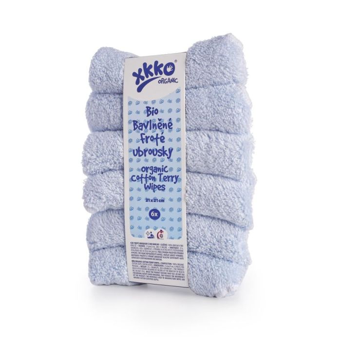 BIO bavlněné froté ubrousky XKKO Organic 21x21- Baby Blue