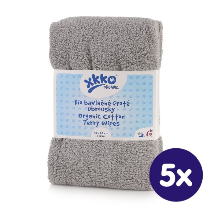 BIO bavlněné froté ubrousky XKKO Organic 40x40 - Grey 5x2ks (VO bal.)