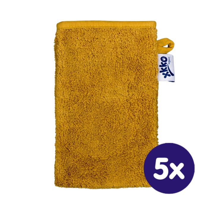 Description / BIO bavlněná froté žínka XKKO Organic - Honey Mustard 5x1ks (VO bal.)