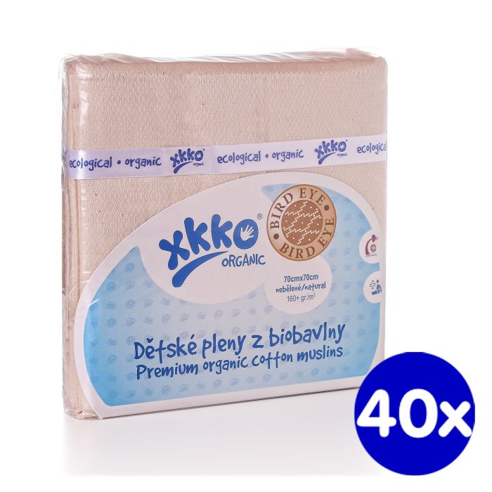 Dětské pleny z biobavlny XKKO Organic 70x70cm - Bird Eye Natural 40x5ks VO bal.