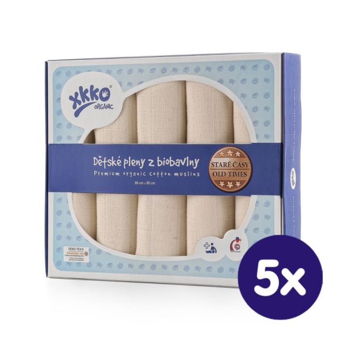 Dětské pleny z biobavlny XKKO Organic 80x80 - Staré časy Natural 5x5ks VO bal.