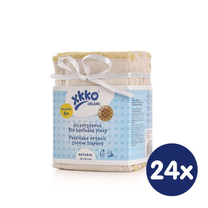 Description / Vícevrstvé plenky XKKO Organic (4/6/4) - Bird Eye Newborn Natural 24x6ks (VO bal.)