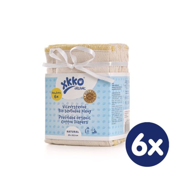 Description / Vícevrstvé plenky XKKO Organic (4/6/4) - Bird Eye Newborn Natural 6x6ks (VO bal.)
