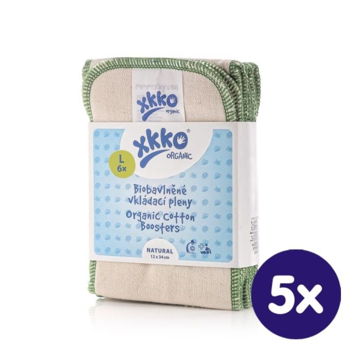Vkládací pleny XKKO Organic Twill - Natural Velikost L 5x6ks (VO bal.)