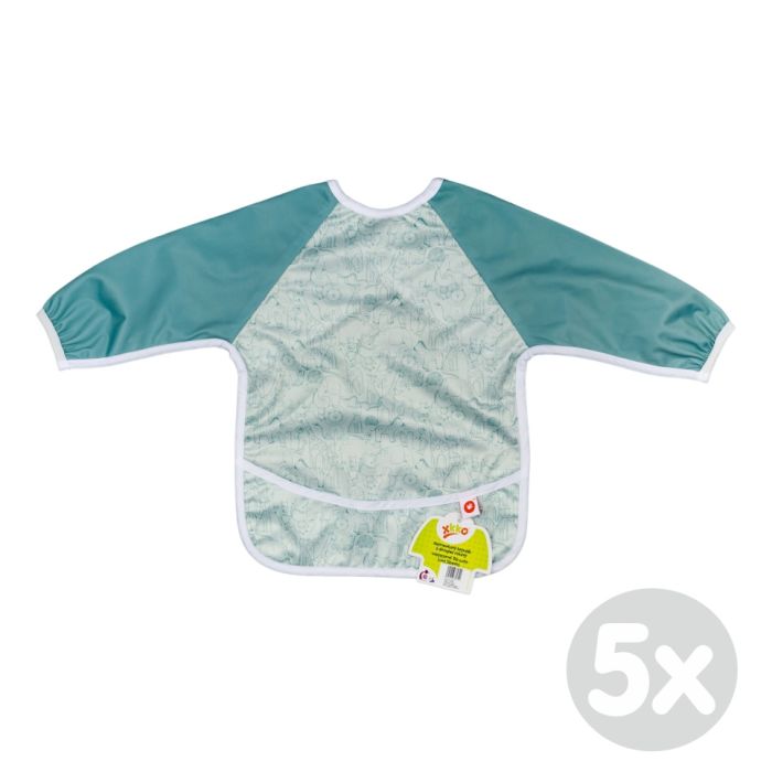 Praktický bryndáček XKKO s rukávy a kapsou, kterých chrání outfit vašeho dítěte při krmení nebo při prvních uměleckých pokusech s barvami.