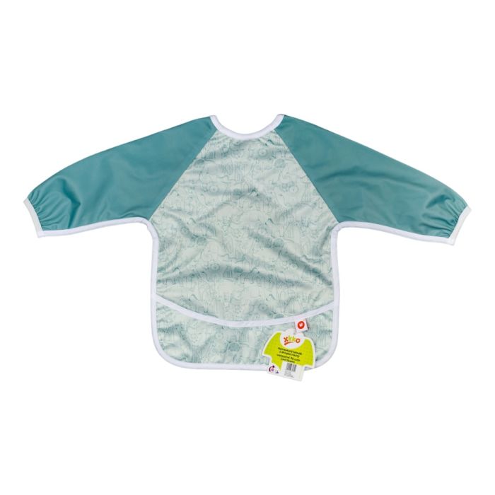 Praktický bryndáček XKKO s rukávy a kapsou, kterých chrání outfit vašeho dítěte při krmení nebo při prvních uměleckých pokusech s barvami.