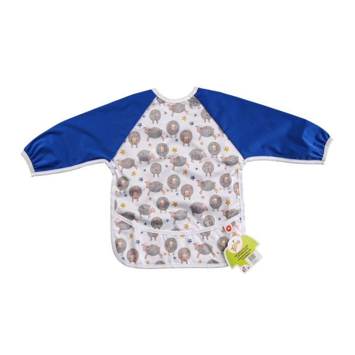 Praktický bryndáček XKKO s rukávy a kapsou, kterých chrání outfit vašeho dítěte při krmení nebo při prvních uměleckých pokusech s barvami.