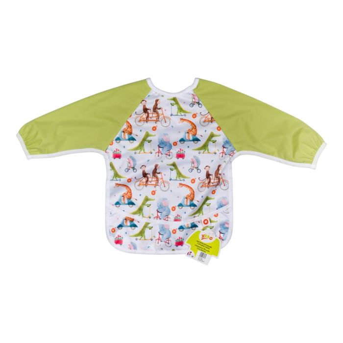 Praktický bryndáček XKKO s rukávy a kapsou, kterých chrání outfit vašeho dítěte při krmení nebo při prvních uměleckých pokusech s barvami.