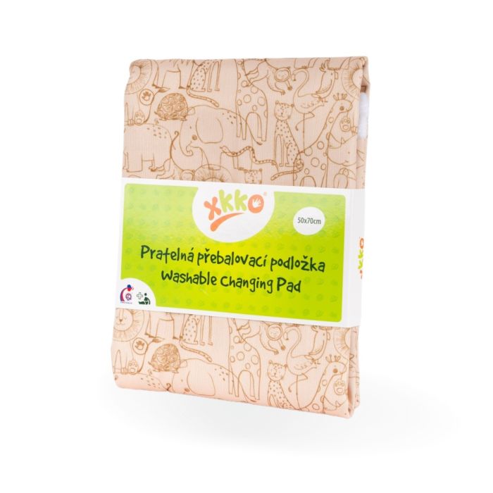Přebalovací podložky XKKO jsou oboustranné. Z vnější strany je nepropustná polyesterová vrstva s polyuretanovým zátěrem. Jako vnitřní vrstvu, tu se kterou přijde Vaše miminko do styku, jsme zvolili naši skvělou bambusovou mušelínovou osušku.